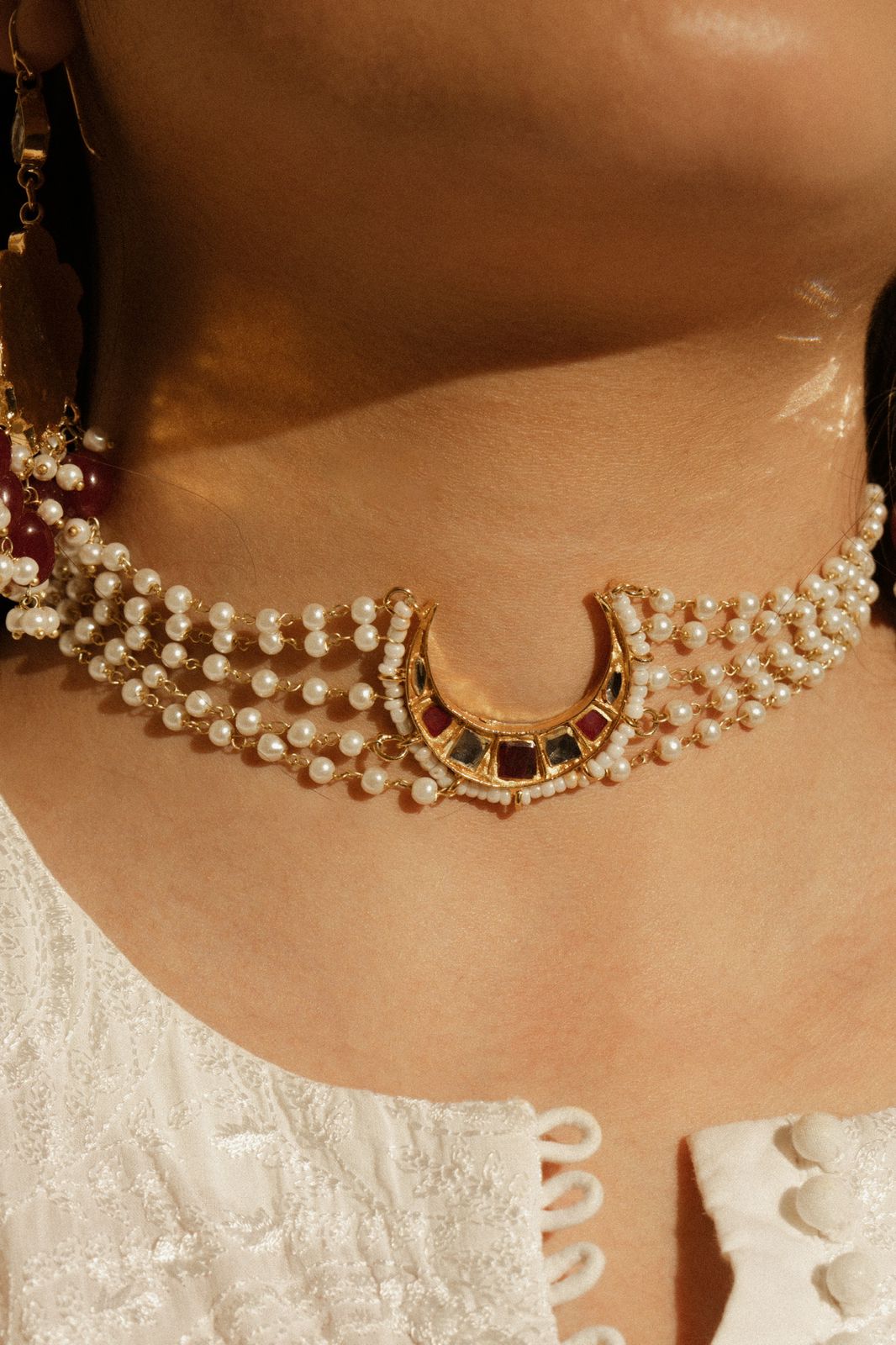 Introducing the ‘Chand Choker’ - a crescent moon design, handcrafted in gold plated sterling silver and adorned with pearls.