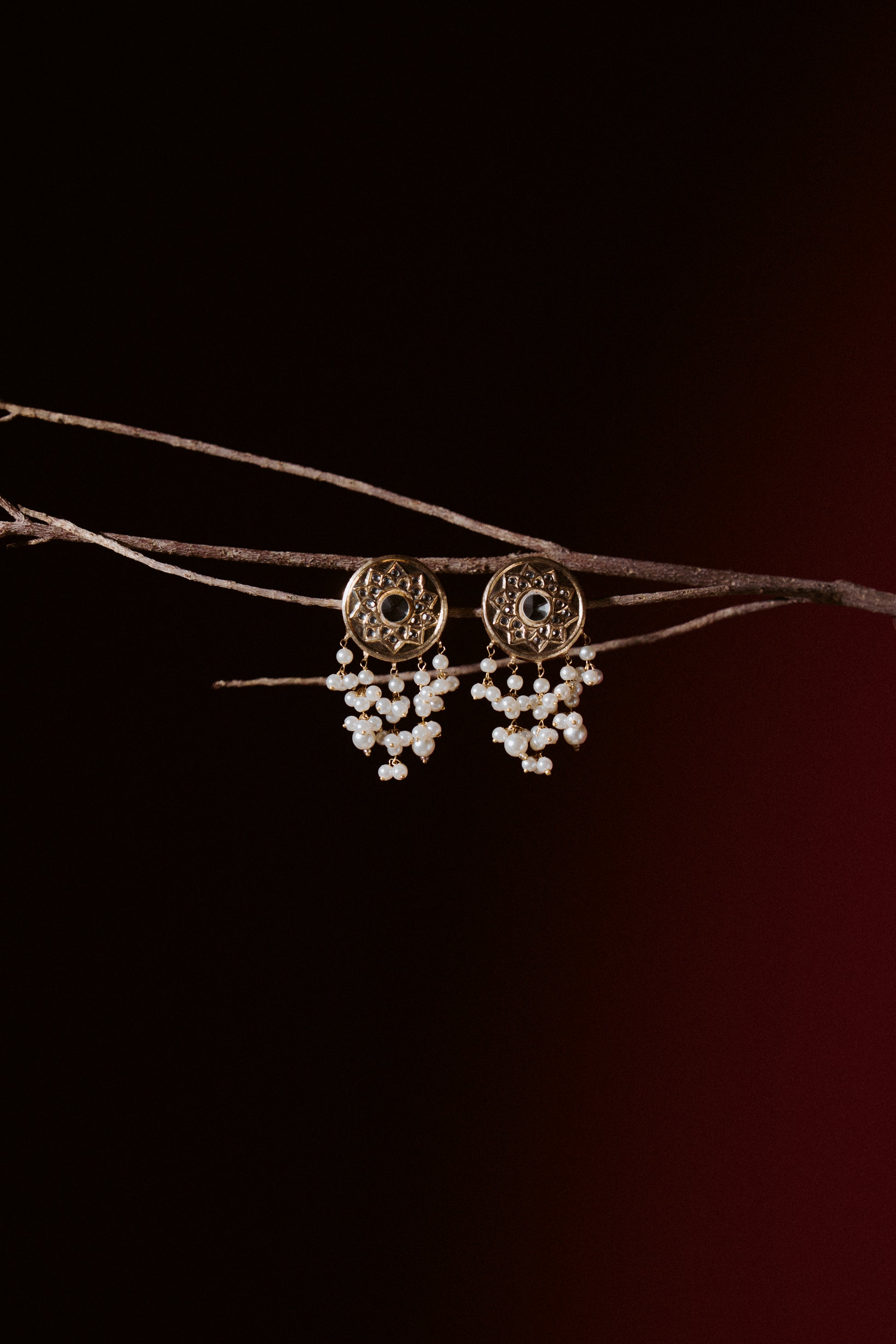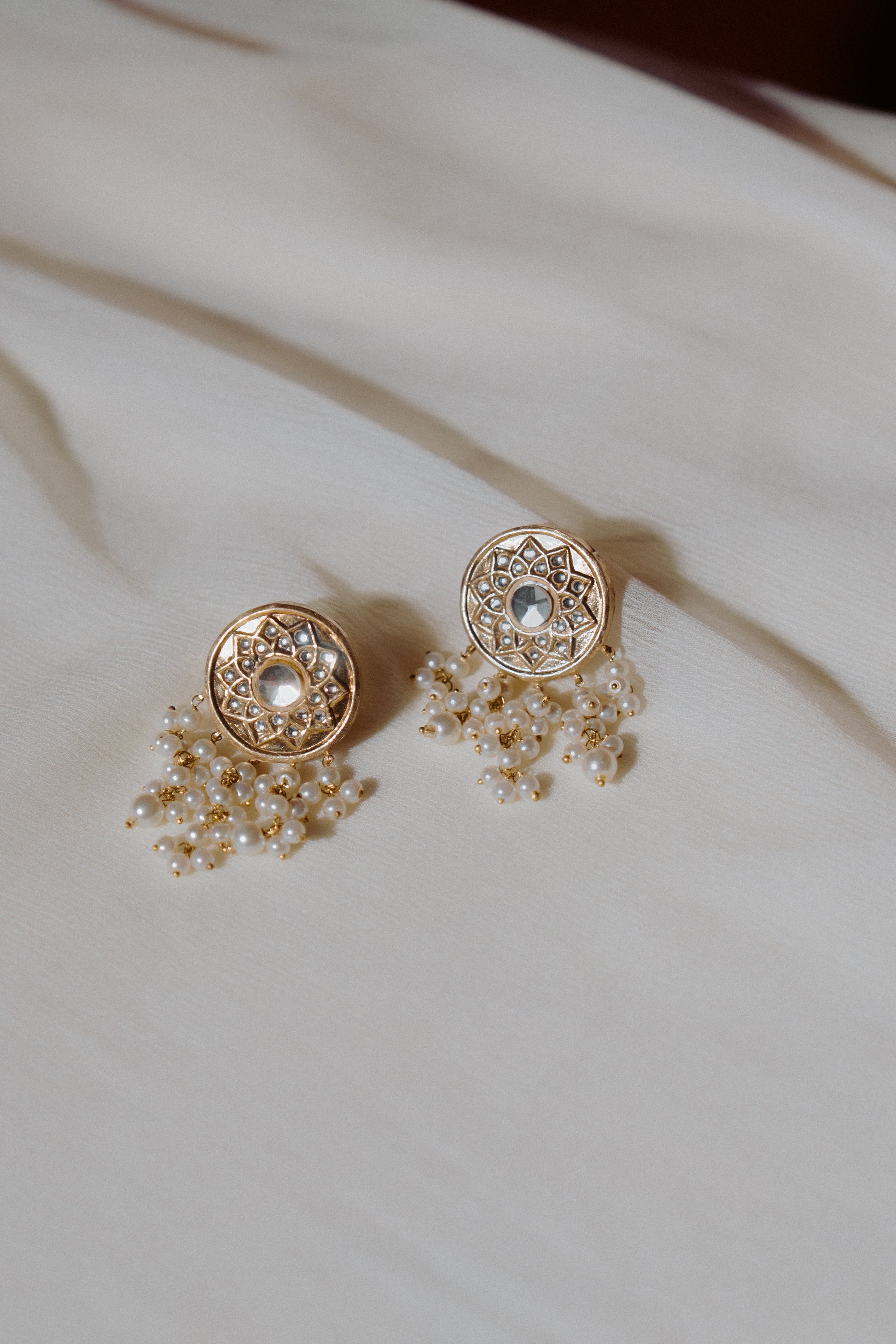 Gold-plated with Kundan detail + that pearl drop moment. Hand-carved and polished with wired pearls - basically slow fashion, but make it glam.
