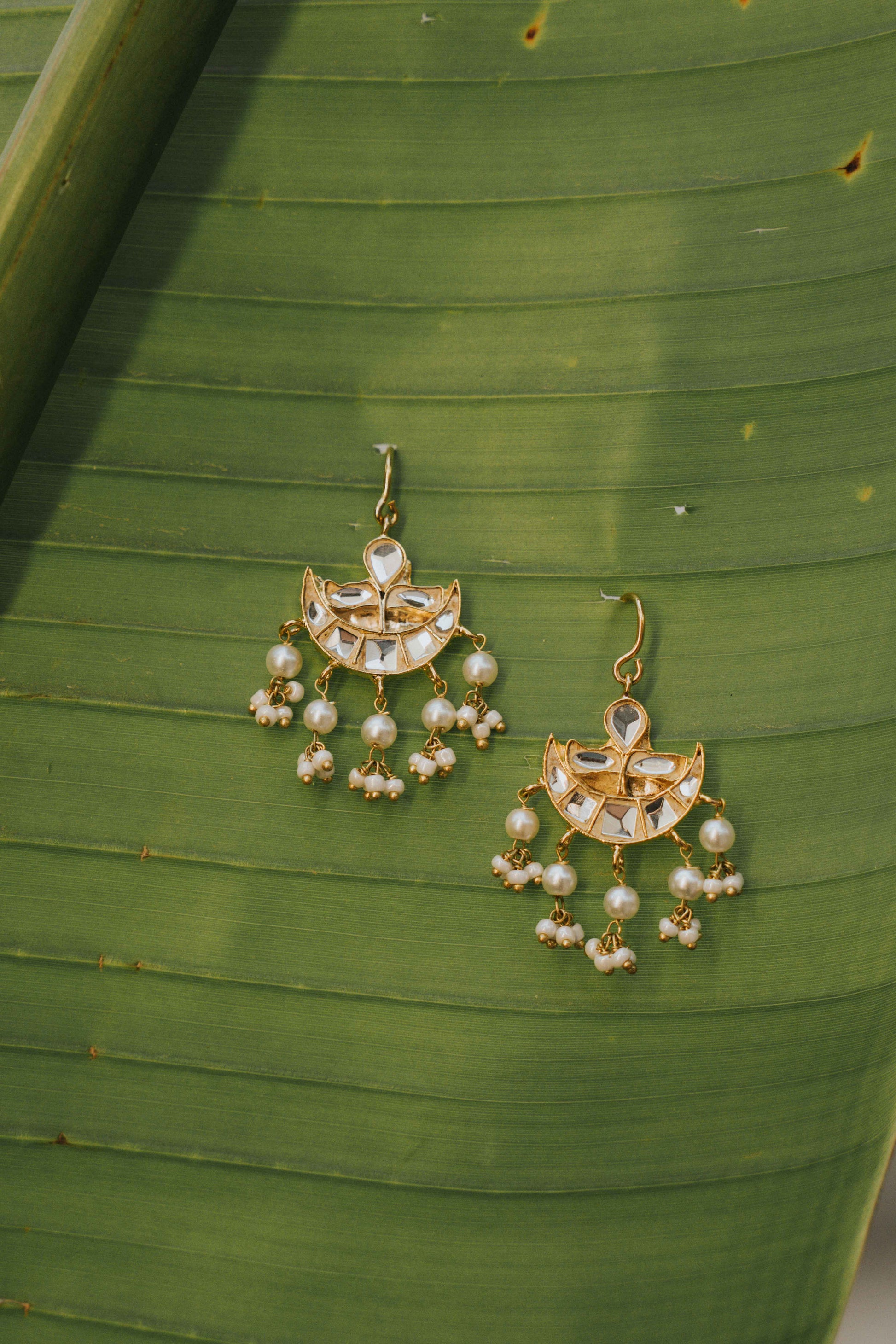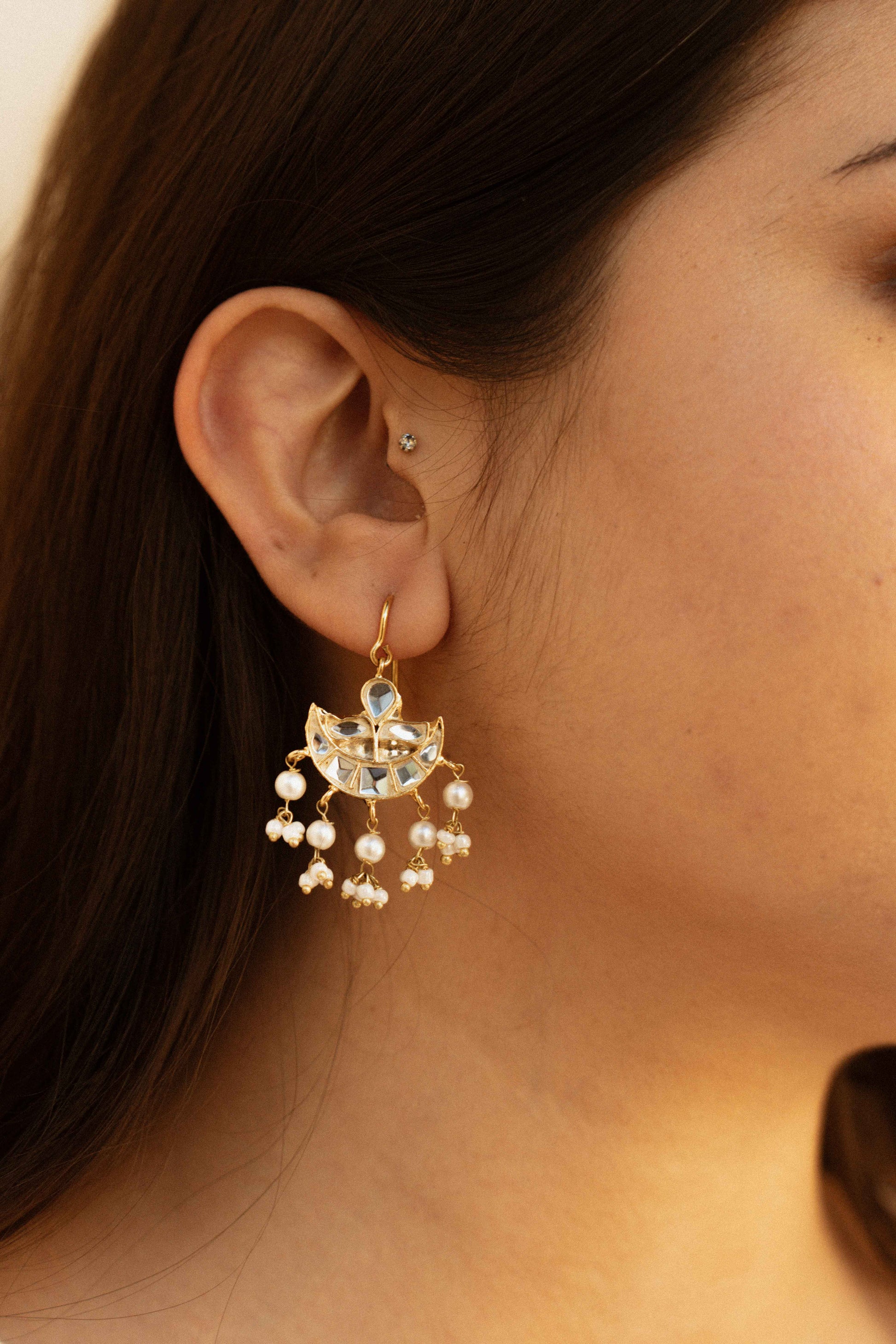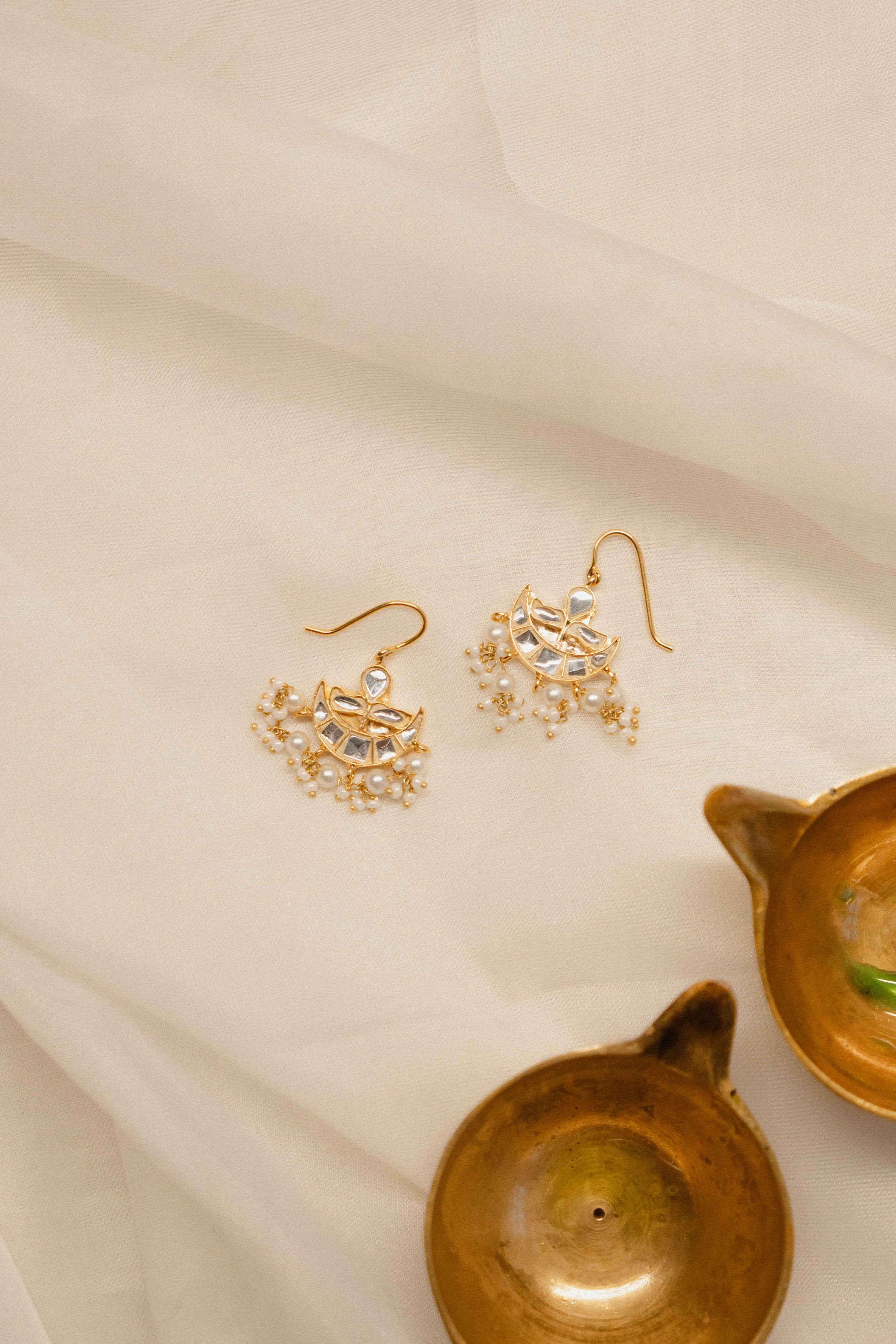 Obsessed with the moon? Now, let these handcrafted Sira Chand Earrings become your new obsession. Gold-plated, delicate, and timeless.